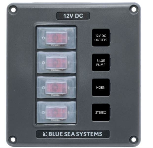 Set of 15 square format circuit labels are included, and are easy to replace. Additional standard or custom labels are available through Blue Sea Systems Systems.