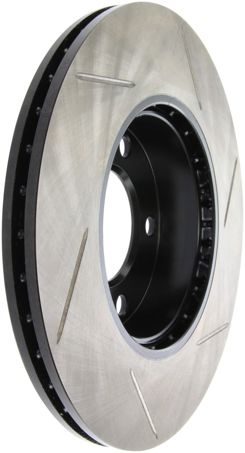 StopTech Slotted Sport Rotors are 1-piece direct replacement brake discs for factory brake systems and stock calipers that look great behind your wheels – and offer significantly improved braking performance. The unique slotting aids with heat and brake dust dispersal, prevents glazing of the pads, adds bite and improves wet and dry braking performance. Built to last, the black e-coating provides protection from corrosion and the high carbon metallurgy (in most applications) offers quieter operation, better crack resistance and increased performance.